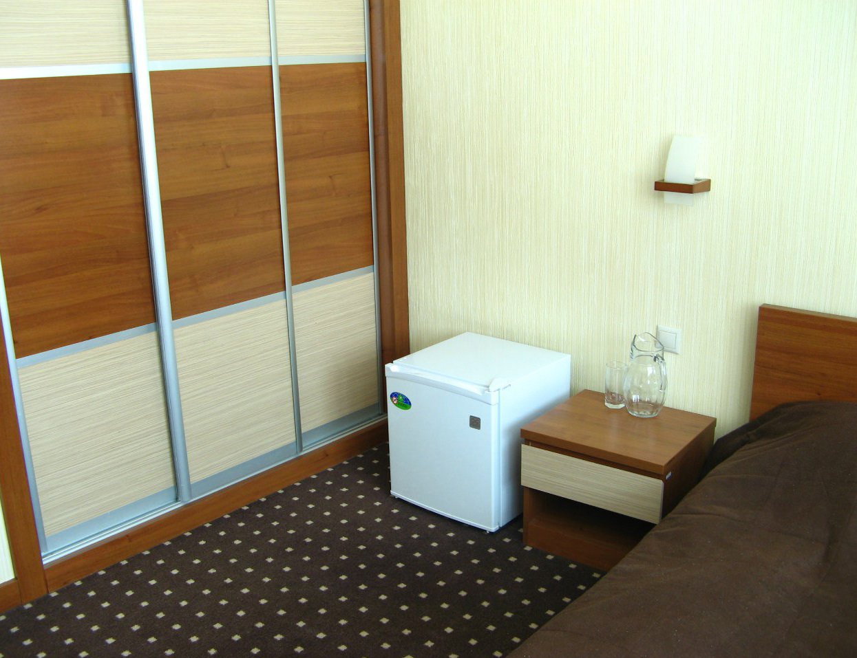 1 осн. место. Мебель: кровать односпальная, прикроватная тумбочка, стол, стул, шкаф. Оборудование: мини-холодильник, телевизор. Санузел: с душем, фен. Сервис: Wi-Fi бесплатно, смена полотенец, смена постельного белья, уборка номера.